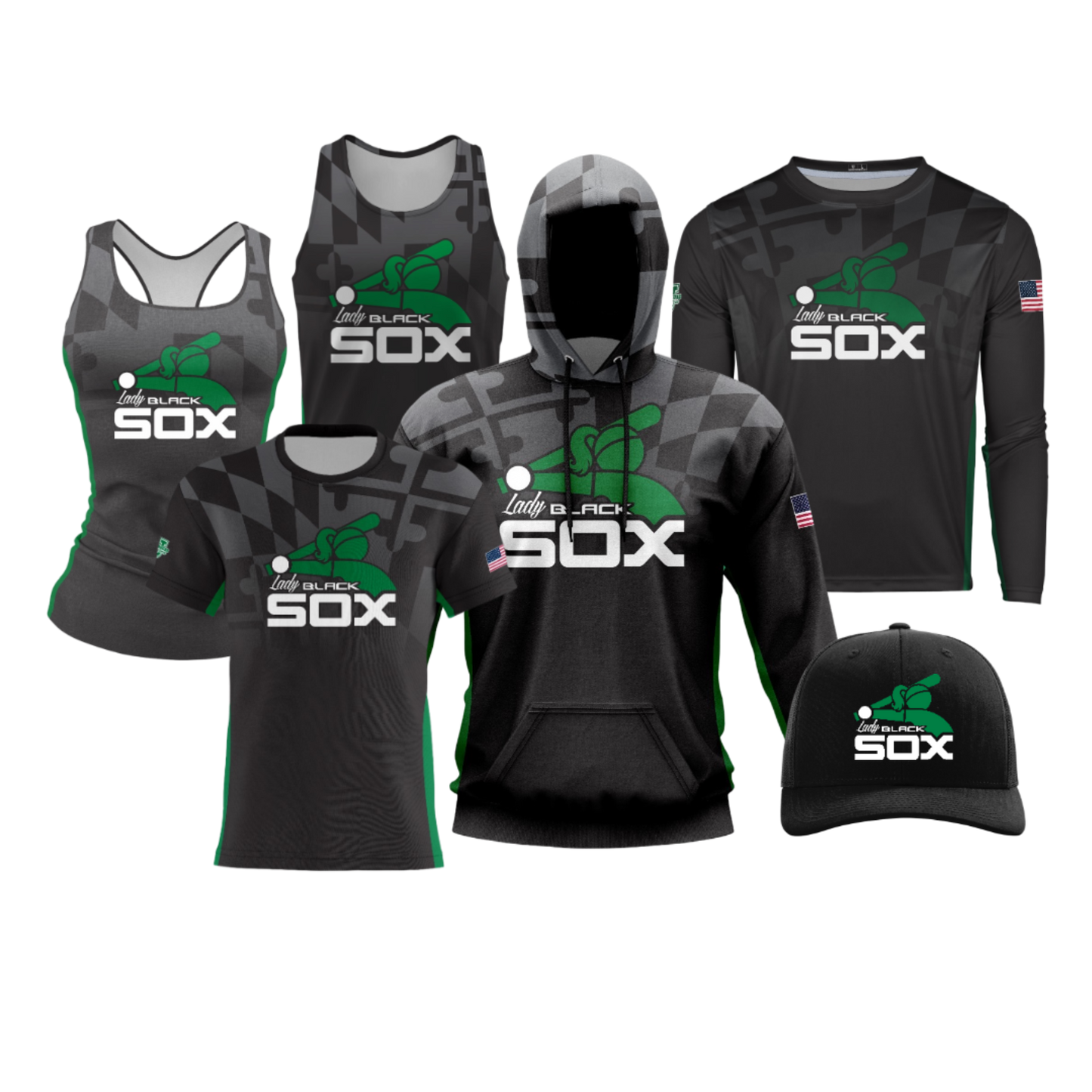 Lady Black Sox Performance Dri Tech Design ~ Black Maryland Grayscale Flag