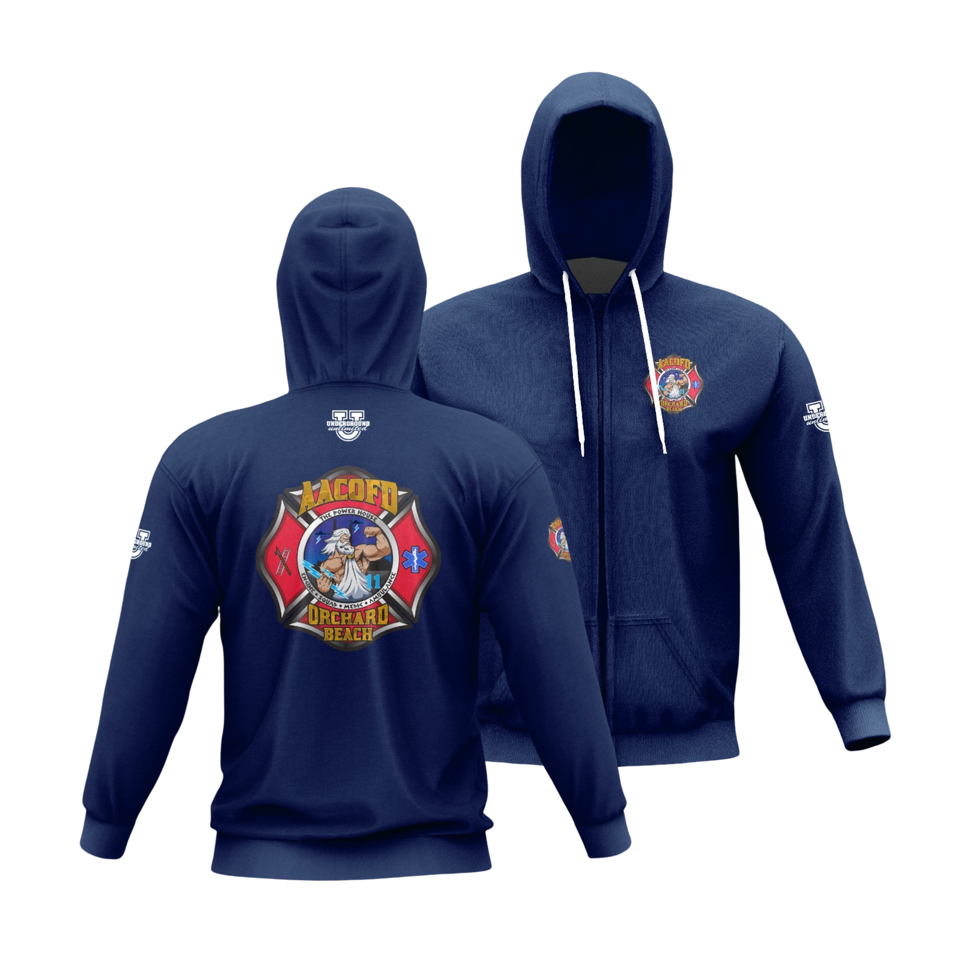 Orchard Beach Performance Full-Zip Hoodie ~ Zeus Logo (Navy)